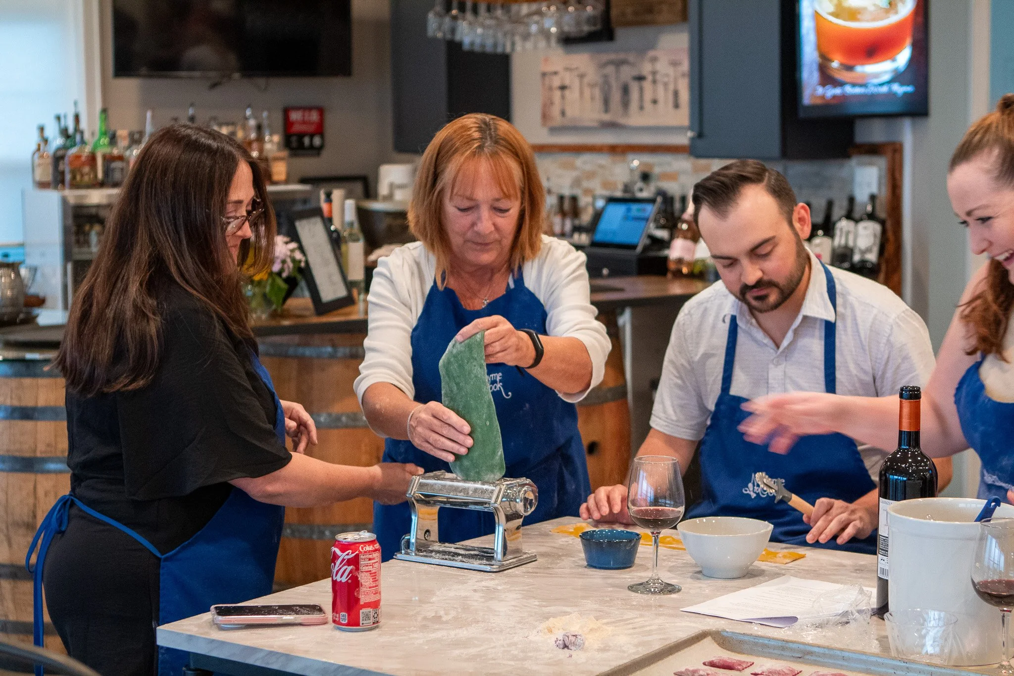 We provide all ingredients, equipment, and instruction — you simply show up ready to cook and enjoy the experience. Wine, beer, and spirit pairings are also available to complement your meal.